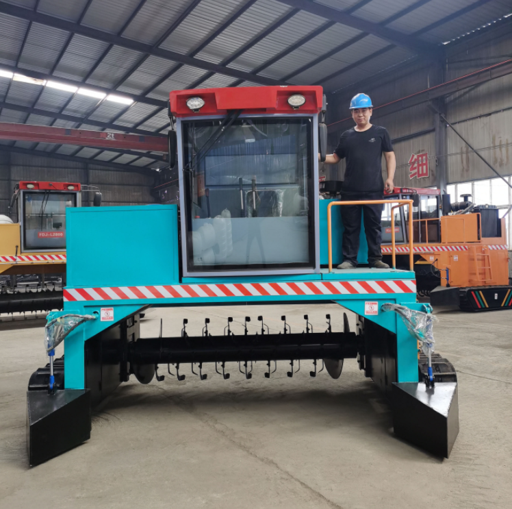 履帶式翻堆機(jī)用于地面條垛式堆置發(fā)酵生產(chǎn)工藝,是對(duì)物料實(shí)施翻拌、破碎、供氧、篡堆的專用機(jī)具。