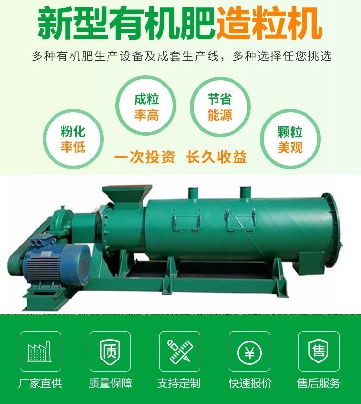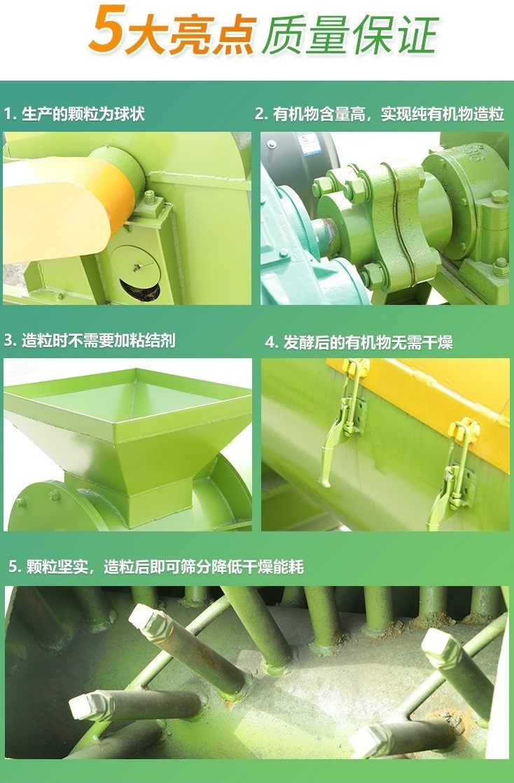 1、有機(jī)肥攪齒造粒機(jī)利用高速回轉(zhuǎn)的機(jī)械攪拌力及由此產(chǎn)生的空氣動(dòng)力,使細(xì)粉狀料在機(jī)內(nèi)連續(xù)實(shí)現(xiàn)混合、成粒、球化、致密等過程,從而達(dá)到造粒的目的。顆粒形狀為球形,粒徑一般在1.5~4毫米之間,2~4.5毫米顆粒成粒率≥90%,顆粒直徑大小可通過物料混合量和主軸轉(zhuǎn)速適當(dāng)調(diào)節(jié),通常混合量越低,轉(zhuǎn)速越高,顆粒越小,反之顆粒越大。2、攪齒造粒機(jī)對(duì)發(fā)酵后的有機(jī)原料進(jìn)行顆粒加工,較圓盤造粒機(jī)而言成品率高,顆粒均勻、光滑、強(qiáng)度高、水份低,其成形后溫度30度左右。發(fā)酵后的原料經(jīng)過粉碎后,用攪拌機(jī)進(jìn)行混合,使物料水份在35%-40%,進(jìn)入攪齒造粒機(jī)就可以加工出球狀顆粒,水份大顆粒大,水份小顆粒小,二者成正比關(guān)系,它利用有機(jī)肥原料在一定作用下互相鑲嵌增大的特點(diǎn),生產(chǎn)出的顆粒圓潤、光滑、強(qiáng)度高,也可添加必要的添加劑、粘合劑等進(jìn)一步改善產(chǎn)品品質(zhì)。攪齒造粒機(jī)適用于的有機(jī)肥原料包括:畜禽糞便類、堆漚肥料類、綠肥類、海肥類、餅肥類、草炭類、土雜肥、三廢物、微生物類及城市生活垃圾等等。該機(jī)合格成粒率高達(dá)90%以上,適應(yīng)多種不同配方,有機(jī)肥的抗壓強(qiáng)度高于圓盤和轉(zhuǎn)鼓,大球率低于15%。該機(jī)最適合有機(jī)肥發(fā)酵后直接造粒,省略干燥工序,大大降低制造成本,因此攪齒造粒機(jī)受到廣大用戶喜愛,我公司所生產(chǎn)的有機(jī)肥造粒機(jī)供不應(yīng)求,節(jié)能環(huán)保值得信賴!
